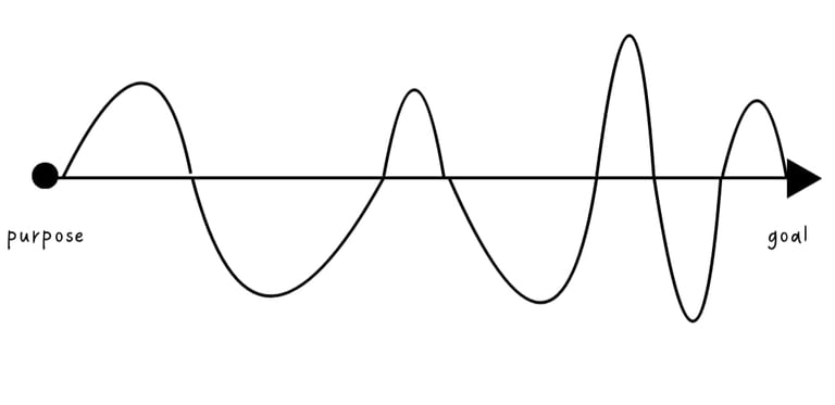 Our path isn’t always a calm sea on a sunny day: sometimes it feels like being stuck in the middle of an ocean during a storm. It feels like our path is chaotic because we don't know what to do, but in reality the sun will always come out, even if it might take longer. If we were to transform these hypothetical waves in a graph, it would probably be something like this (don't mind my math skills):